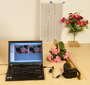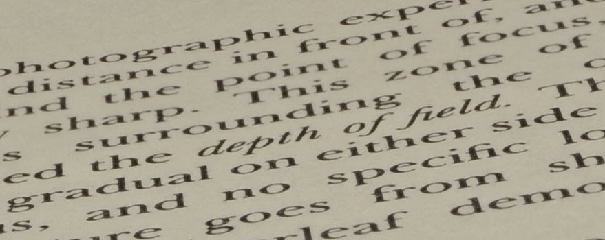 - Set up a piece of paper containing fine text, slanted steeply with respect to the lens.