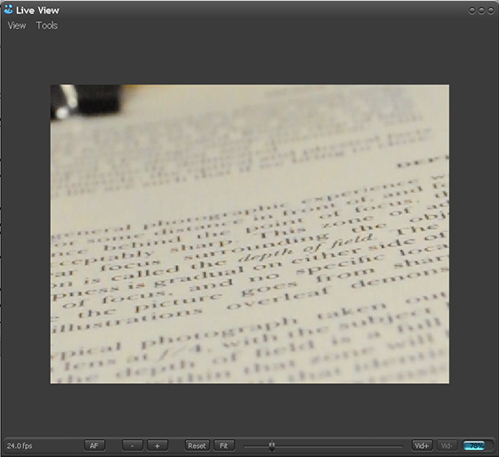 - Open Live View and set focus to somewhere in the middle of the text. Double-click there and zoom in far enough to see the level of detail you care about.