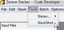 - In the Zerene Stacker menus, select Tools > Stackshot.