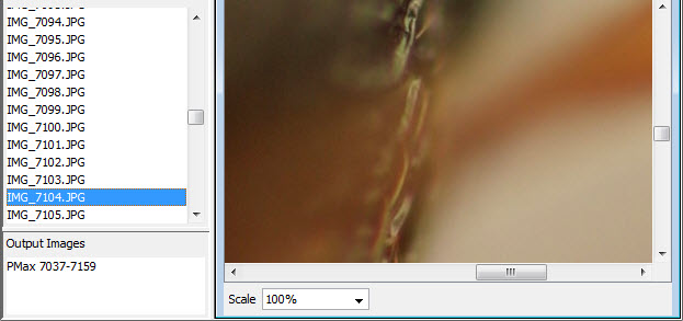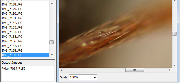 Then we use Stack > Stack Selected (PMax) to make a stacked output from just those images. This produces a new output file that has a clean rendering of the antenna.